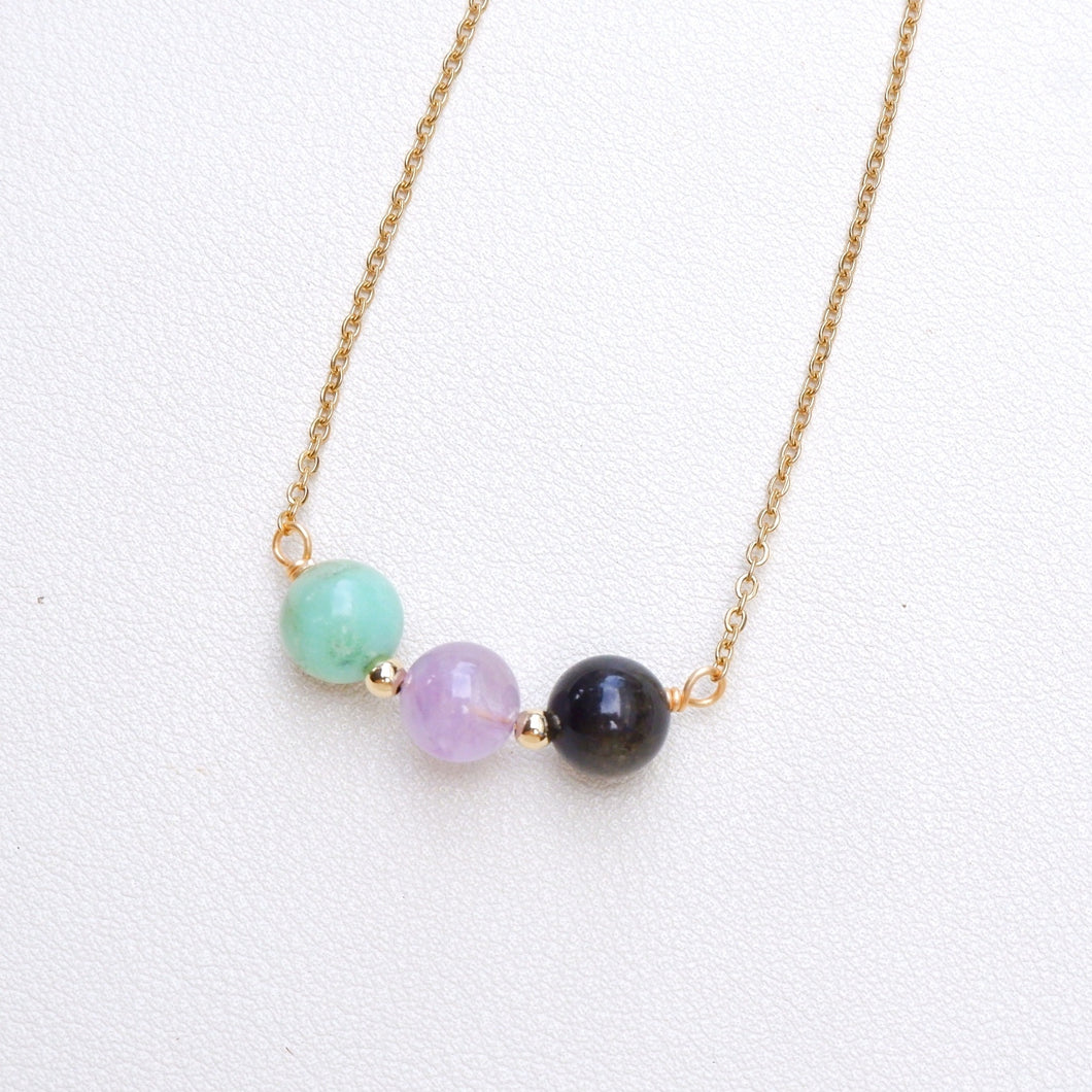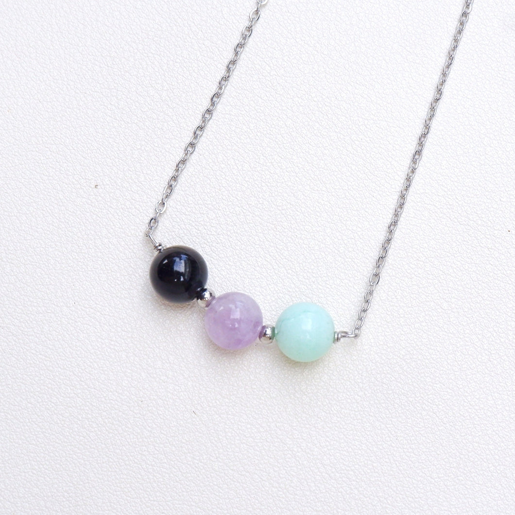 💜 Light Amethyst — Brings tranquility, spiritual clarity, and emotional stability. It calms overthinking and helps you release unnecessary tension, restoring balance between your mind and emotions.