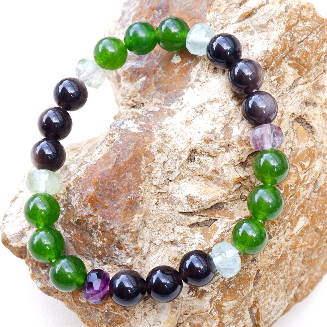 Silver Sheen Obsidian — Provides grounding and energetic protection. It helps you stay centered, release self-doubt, and see your path with clarity and self-awareness. Its silvery shimmer reflects strength and inner stability.
