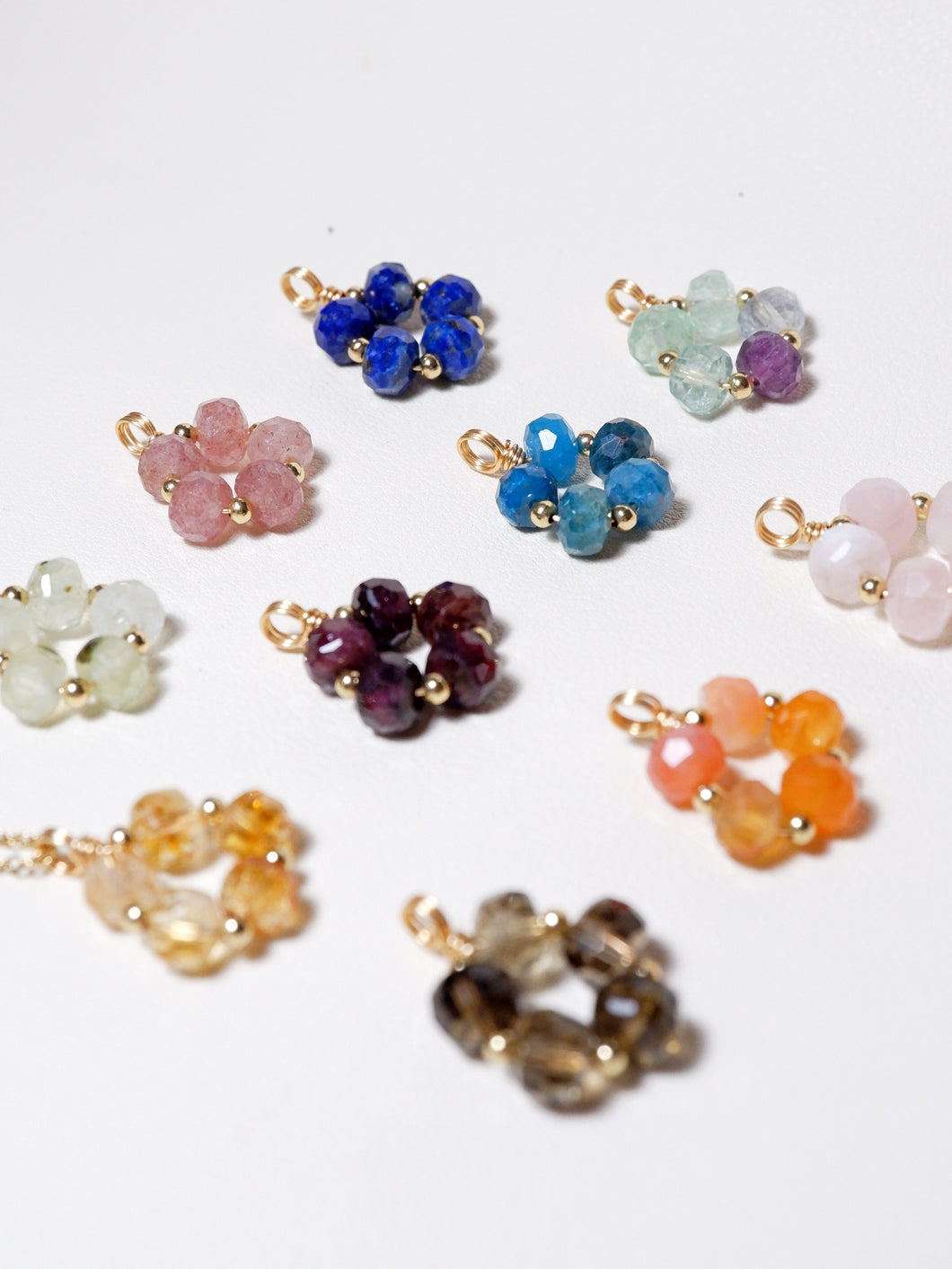 Crystal Choices: Citrine, Lapis Lazuli, Rose Quartz, Strawberry Quartz, Garnet, Fluorite, Prehnite, Carnelian, Smoky Quartz, Blue Apatite